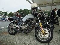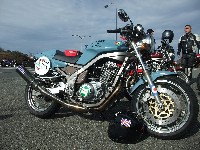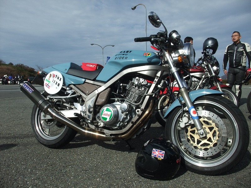 今回、初参加のシモキ氏のマシン。海軍色に塗り替え、アメリカっぽく仕上げています。