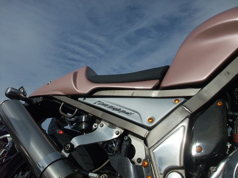 大胆にイメージチェンジを計ったgoose644氏のマシン。 The Simpleの初期型用シングルシートカウルをIV型にコンバート。 …と書くと2行で説明が終わってしまうのですが、 |