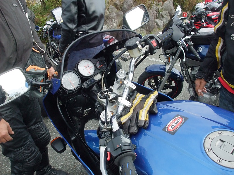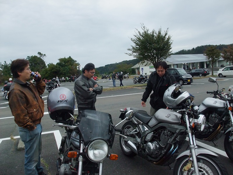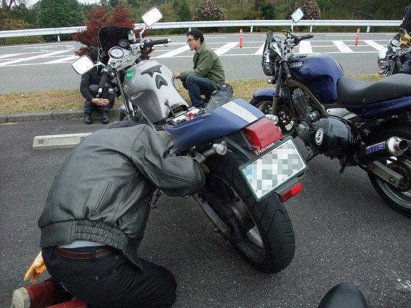 sugar氏のTRXは、フロントフォークのO/Hで絶好調!の筈が…。 さてさて。時間も押してきましたし、そろそろ移動しましょうか。 |