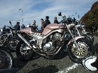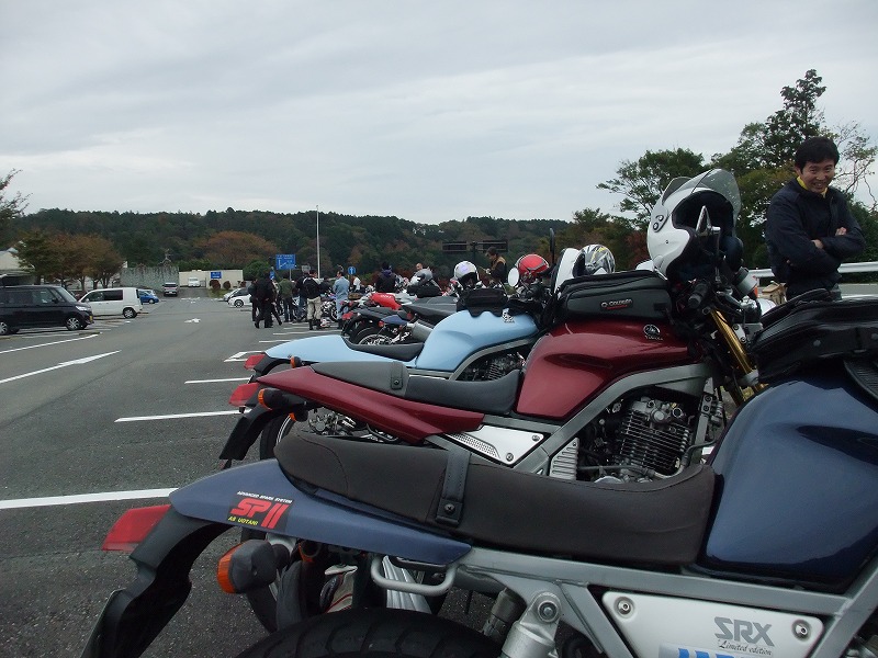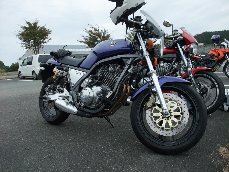 SRX以外にBMWもお持ちで、年間3万km以上を走られるというtomo氏。 某二輪用品店(仮名ラ○コランド)スタッフ、タブチくんのマシン。 |