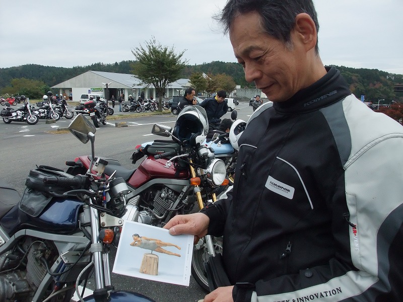 クールなBROSの緑茶氏は、BELL氏のご友人。秋の全国オフにもいらしてましたね。 「実は私、彫刻をやっておりまして…」と、作品の写真を見せてくださった杉氏。 |