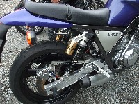 キャブは(当然)FCR。ホイールは(たぶん)マグ。フロントは(敢えて)正立のOHLINS。