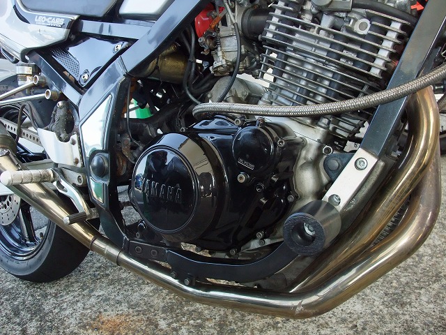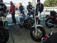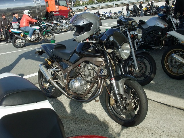 Bandit400Limitedのカウル+オリジナルのシングルシートをフィッティングしたTRX。 こちらは初参加の札幌ナンバーさん。前後18インチの最初期型400で参加。 |
