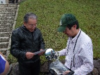 1J氏をレンズ部に引き込もうと営業中のgizmo氏w 広島から自走のAZMAN氏。ずいぶん長い間ご無沙汰だったような気がします。 アザミさんは、つねお親分が運転するおベンツの送迎というVIP待遇。ふたりとも、次回はバイクでね。 |