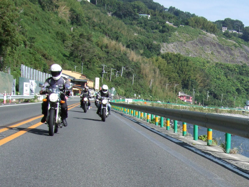 隊列が途切れてしまわないよう、台数が多いときは熱海道路を用いて先導します。 でも、目的地はいつも同じなわけですから、ルートは自由に選んでいただいてOKですよ。 適当に分散したほうが、交通の流れ的にも好都合な筈ですしね。