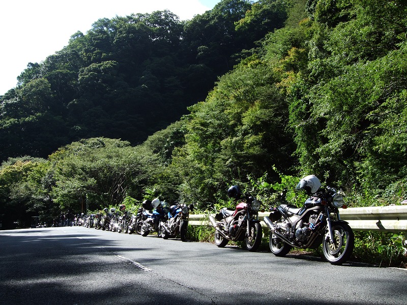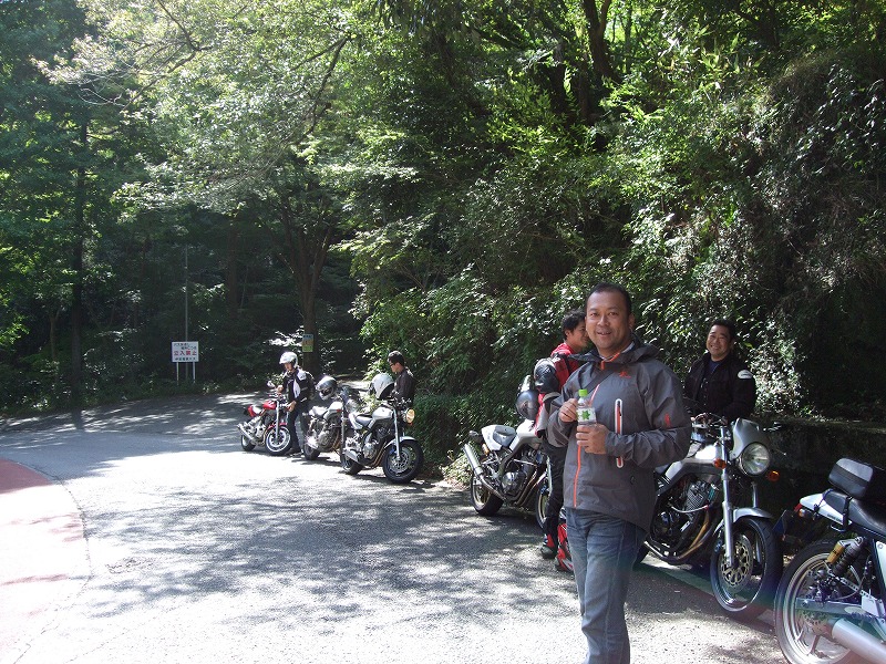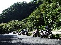 ワインディングへ突入する前に、日陰で一服中のman3ご一行w 久しぶりの快晴とあって、この時点で30台もおりました。