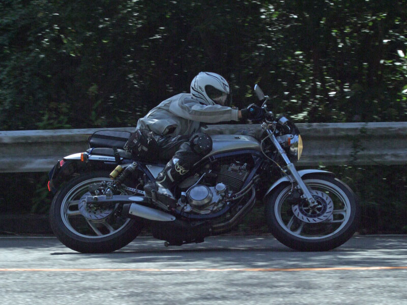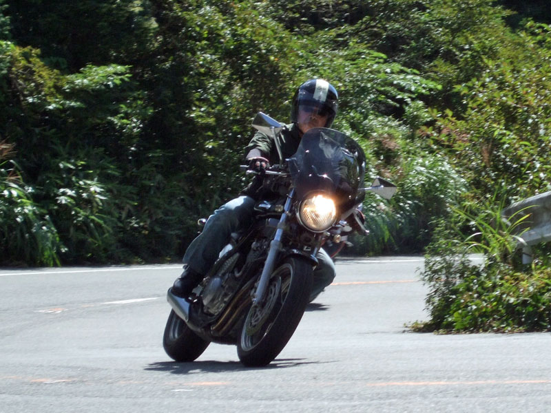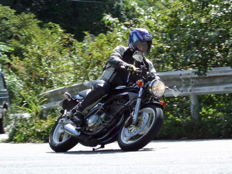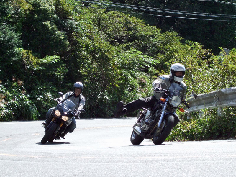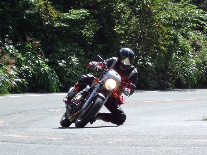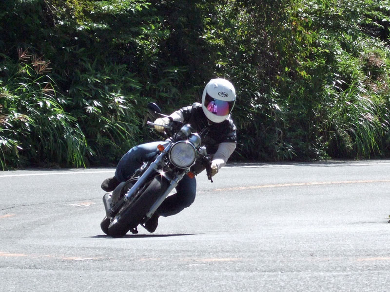 先ず駆け上がってきたのは、ヒロタ氏。おニューのBT45さまで気持ちよさげ♪ キレイなリーンウィズは、誠氏。大人しそうに見えますが、結構なペースで結構なバンク角です。 スーパートラップを装備した銀のIV型は初参加の方でしょうか?