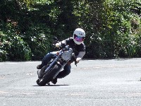 「低い速度レンジで膝を擦れるのが僕の得意技です。<( ̄^ ̄)>」悪い子ぶりは健在のtakaちゃん。 FZ1のご友人を引き連れ、ライダーキックをかますnakamura氏。 近ごろ、SRXを手放し、VTR250に乗り換えられたとし氏。 あまり知られていないことですが、VTR250はジムカーナ最強マシンなのだとか…。