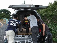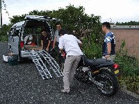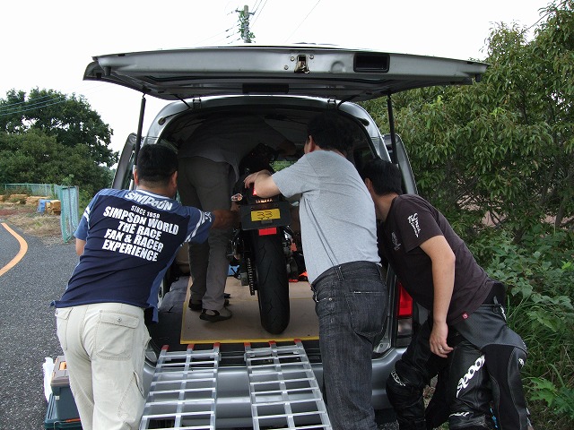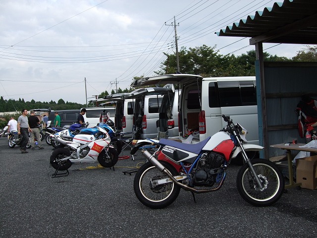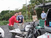 つねお氏の初期型SRX600。 年に一度、SingleNutsのときにしかバイクが載らない33氏のサンバー。 33さんサンバー、サササンバー。イチバニバサンバー、サササンバー。 慣れない積み下ろし作業にハラハラドキドキ。 |