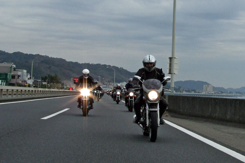 これだけの数のバイクが後ろについていると思うと、ちょっぴり、緊張しますね。