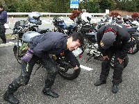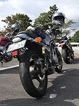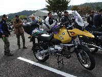 途中で何故か遅れていたS部氏のBMW GS1150。 リアホイールを固定するボルトが4本全て緩んでいたそうな。 S部氏:「死ぬかと思ったよ。てへっ」 |