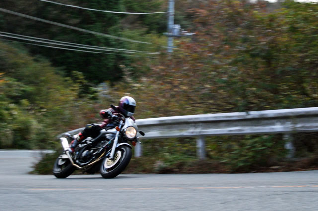さて、今年の〆の写真は、椿ラインを激走するtakaちゃんでございます。 9月のman3レポで、帰りにサイレンサーがすっぽ抜けてオチにされたことを(かなり)根に持たれていたので、 今回はカコイイ走りの写真を持ってきましたw ちと(かなり)ブレてるけど、これはこれでスピード感あって、いい味出てるでしょ? それでは皆さん、冬の間に風邪など召さぬようお気をつけて。また会う日まで。See You Next!!!