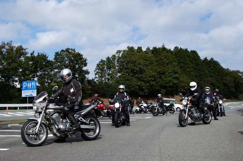 前を走るホンダNC700は、イソ氏。 以前はよく遊びに来ていたひとが、ふと、顔を見せてくれなくなったりすると、 たとえマシンをSRXから乗り換えても、せっかくできたひとの繋がりが切れるのは寂しいです。 |