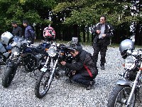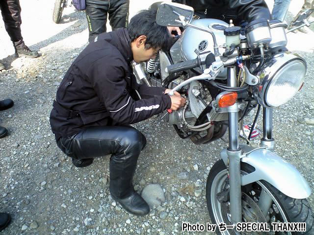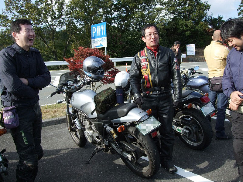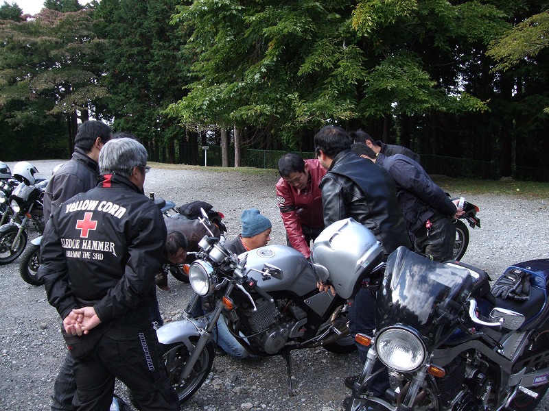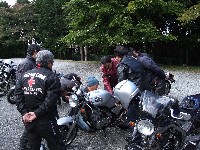 無事、みんな戻ってきたところで三々五々の自然解散です。 gizmo氏:「DUNLOPに“なんでこんなもん(カーカス)が出てくるんだ”て文句言うべきですよ」 アタマの悪いのは放っておいて、とっとと家路を急ぐたぁまちゃん氏。お気をつけて〜w |