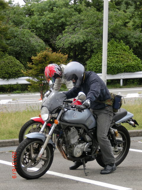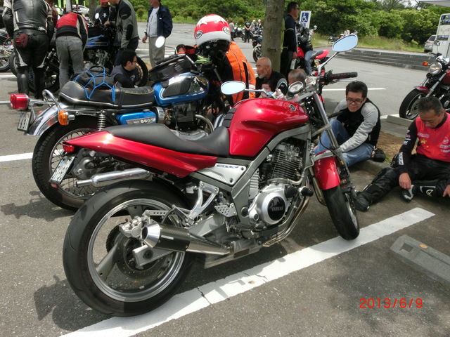 知るひとぞ知る変態大明神、まめしば氏のGS1000。(後ろに映っているのはつねお氏とけんさん) で。この力尽きてお昼寝中の鳴神氏の写真がなにげにお気に入りw |