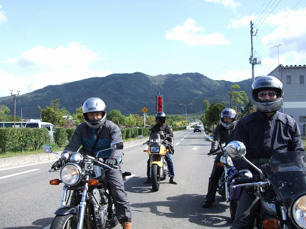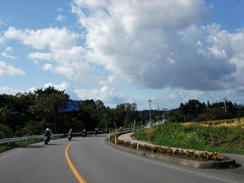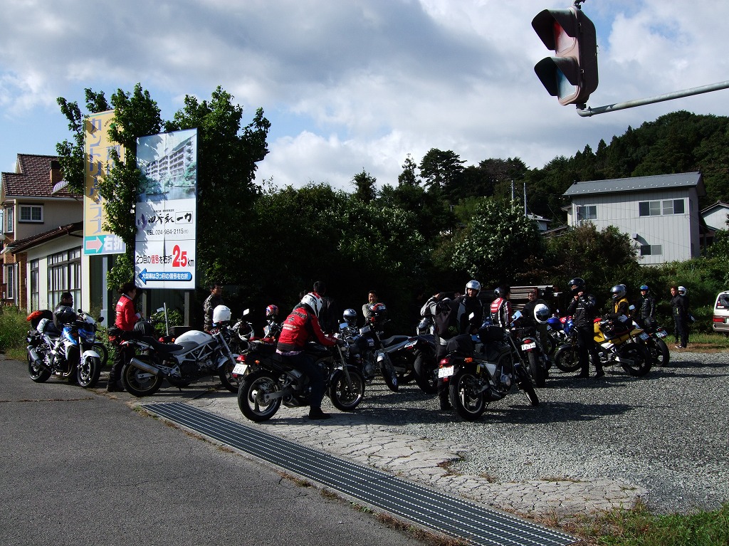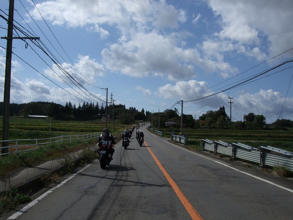 昨日まで30℃超えの真夏日だった関東組は、福島の寒さがそうとう堪えたみたい。 そらいろ号の後方には、右曲りのダンディー氏と、 |