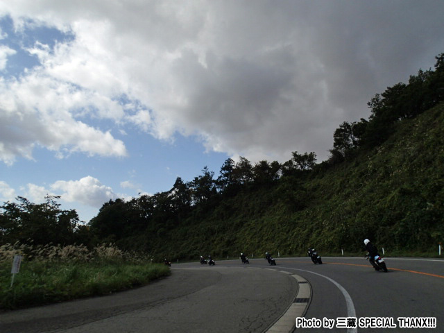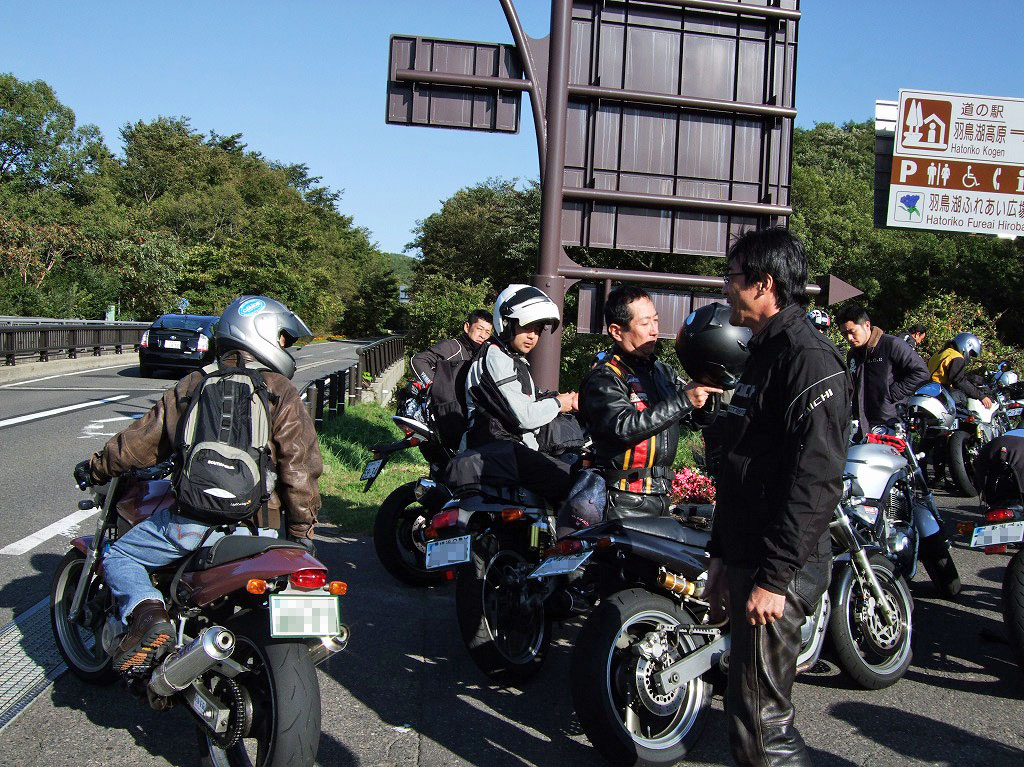 14:00 腹がくちたman3一行は、最後の休憩ポイント、道の駅『羽鳥湖高原』へ移動。 今回の紅一点、ここ♪@VTR嬢。ryohrz氏の話では長距離ツーリングジャンキーらしいw でんすけ氏のGSRx。なんと前日の夕方5時に神戸を出て、徹夜で走り続けて来たとか! |