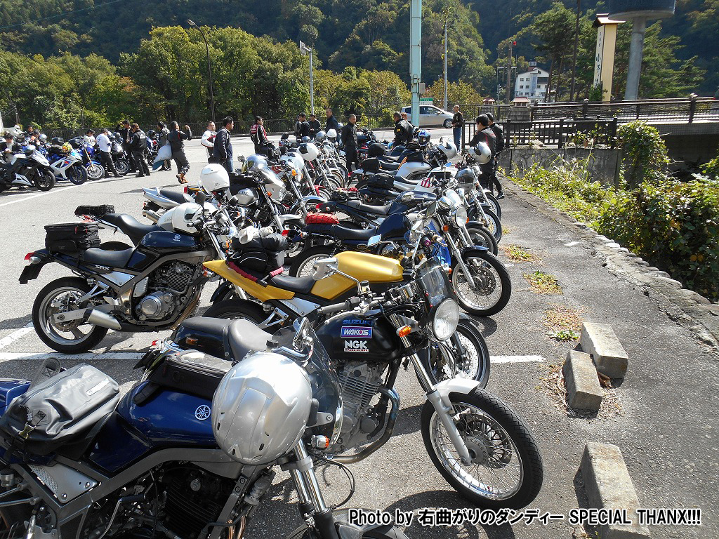 というわけで福島man3集合写真です。右曲りのダンディー氏のBlogより拝借いたしました。 地味な存在ながら、実は大名車のヤマハSRV250。 |