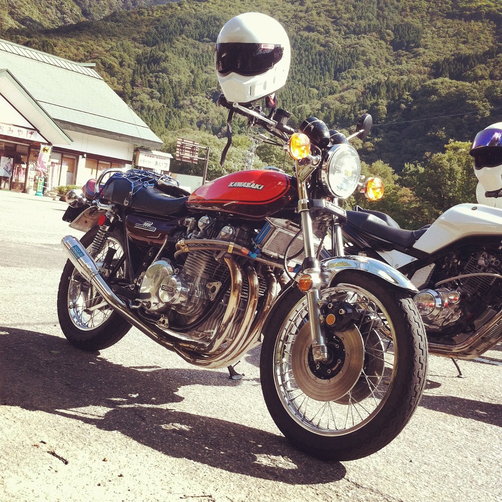 スカブ650で来ていた三蔵氏のBlogより、ちょっと写真を拝借。 “ぴんくむぅむぅ号”と名づけられたエロRXを駆り、 |