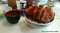 現地で一行をサポートしてくださった方のZ。 こちらのRZもサポーターさんのマシン。 『ドライブインあいづ』おすすめメニューのソースかつ丼。ごはん3合くらい盛ってます! |
