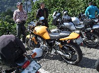 ぴっかぴかに磨き上げられたイエローの初期型ははんざわ氏のマシン。 ryohrz氏。ぱっと見どノーマルですが、騙されてはいけない。 gizmo氏とえびづか氏のツーショット。 |