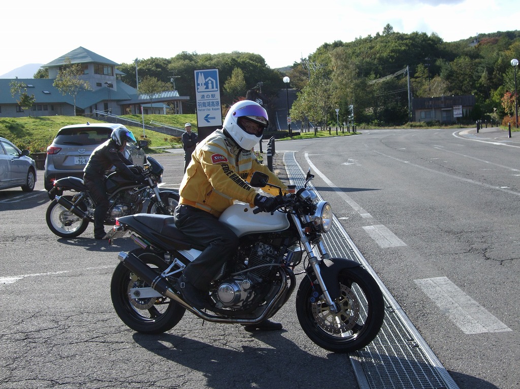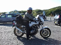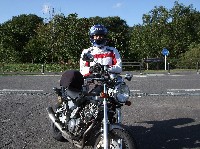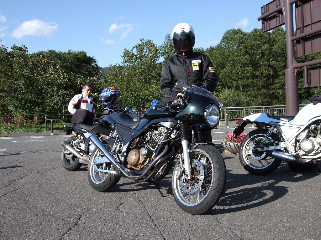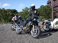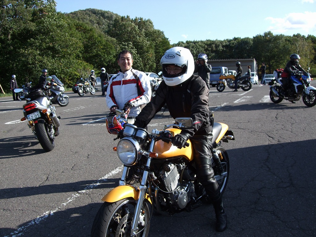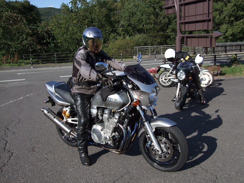 旧き善き正統派ライダーの見本みたいなスタイルのはんざわ氏。 今回はXJR1300で参加のクリスチャン査盆氏。 |