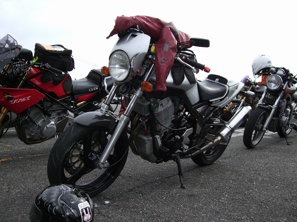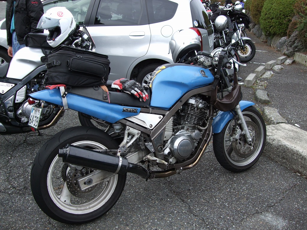 伊豆スカ熱海峠の入口には、臨時の二輪用通行券売り場ができてました。 僕:「まとめて払うけど、台数把握してないから、一緒に数えてよ」 毎回のように同じやりとりがあります。どちらもまったく進歩しないし学習しないしする気もない。 TRXのぴぃ氏。キャブのセッティングに納得がいかないらしく、路上で開店5秒前の図。 |