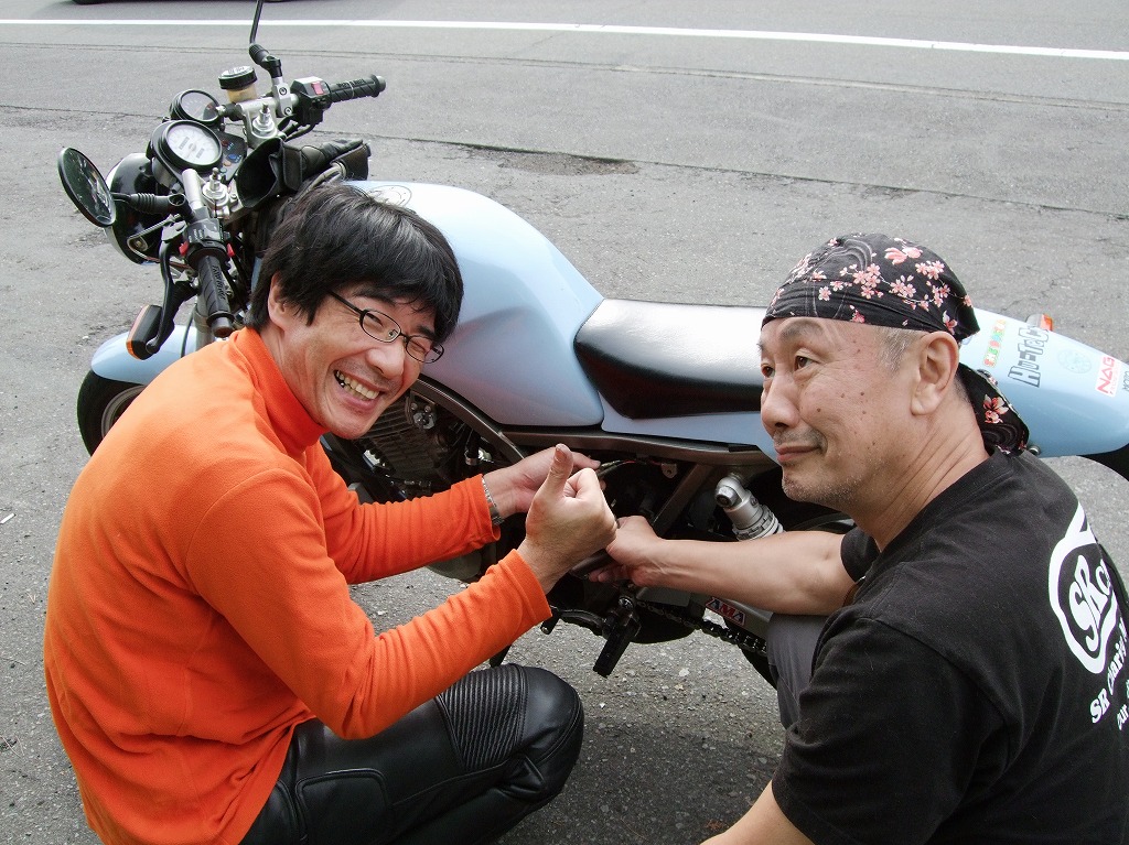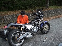 下手人と思しきnakamura号のCDIをそらいろ号に繋ぎ、エンジンが始動するか確かめます。 「…問題なしですね」「あれえ?」 nakamura氏の焦燥を余所にタンクぺちぺちしてごきげん(?)のゆっきーちゃん(♂)w |