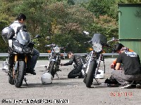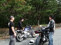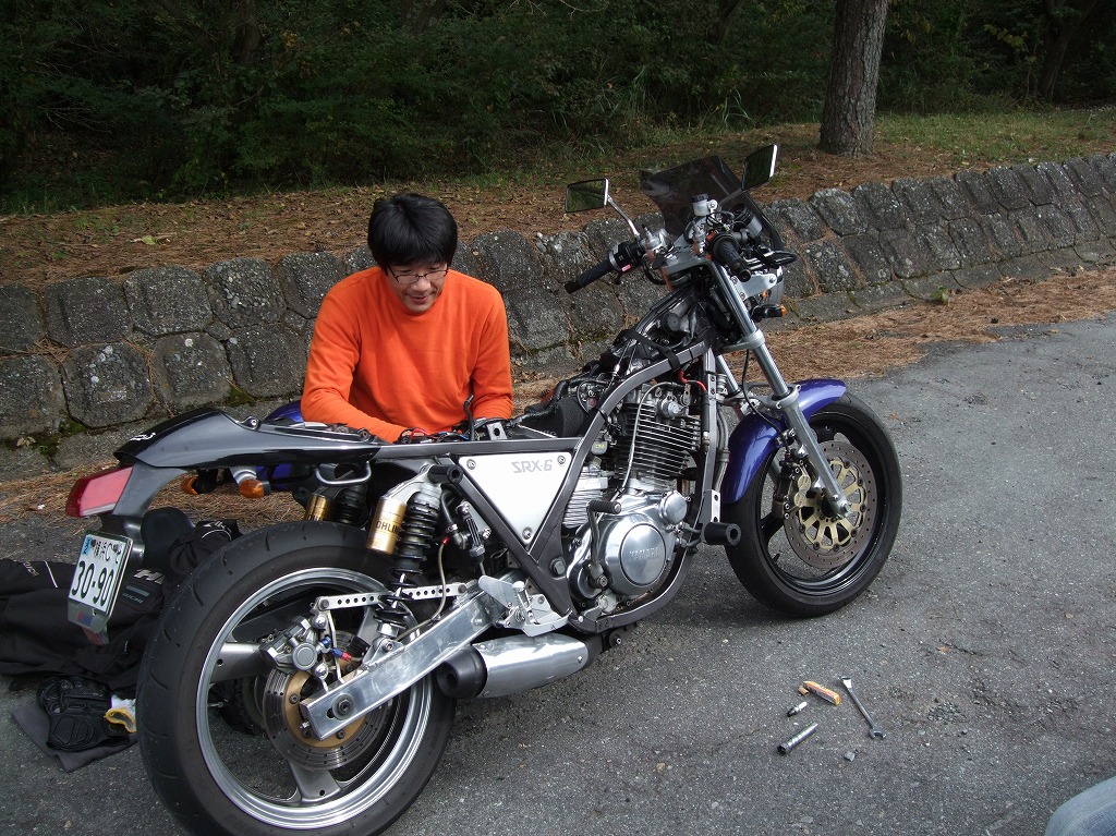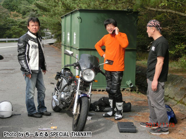 そういえば、韮山峠の先の広場でnakamura氏が止まってたなあ。 「点火系がノーマルの初期型のひと誰か来て〜(^人^)」 どうやら走行中にエンジンが止まってしまったらしい。 |