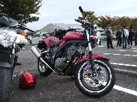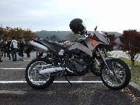 戻ってきた一行は、あっち号の顛末を聞いて大爆笑w KTM DUKE620は、nakamura氏のご友人のマシン。 ショッキングピンクでコーディネイトされたしじみさんのマシン。“女子力号”と勝手に命名。 |