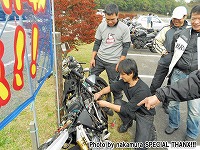 急遽、トランポに変身したちーさんのセレナに積み込まれたあっち号…w その頃、一行はというと、居残り組を見捨てて峠道を愉しみ、記念撮影までしていたのでしたw |