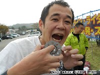 なぜか女子トイレの前でカコヨク決める漢たちw 張り切る鍛冶屋氏とベン太郎氏。 ど派手なペアルックは、こうヤン&しじみご夫妻。 |