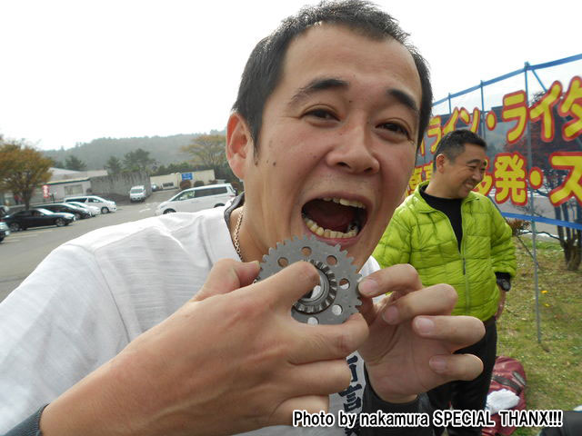 | ケッチンの衝撃でスターターギアが欠け、クランクケースにも亀裂が入っていたそうな…。 しゅーりょーお。ちーんw 「がっはっは〜。おれがこっそり齧ってやったんだYo!」ドヤ顔takaちゃんw トラブルはWebで晒(ryに従って、にこやかにポーズを決めるあっち氏。 |