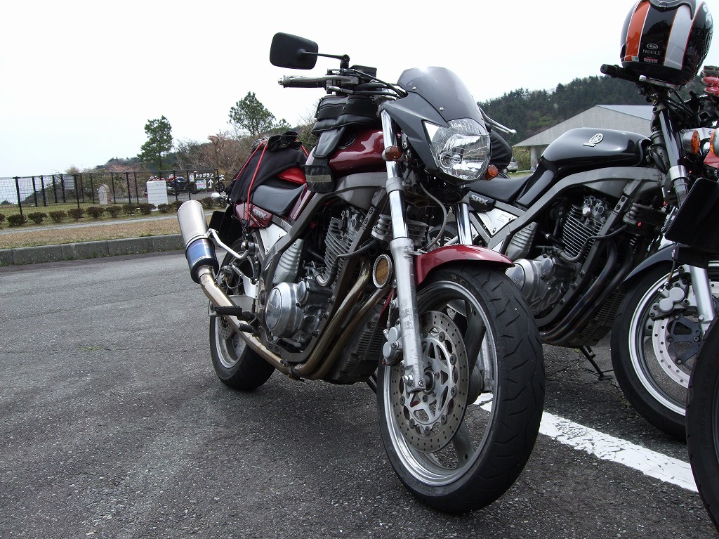 親子で箱根man3その1 めずらしいSRX250は、ジョン氏の息子さんのマシン。奥の初期型がお父さんのバイクです。 それぞれ、ジョン・ジュニア号&ジョン・シニア号と勝手に命名w