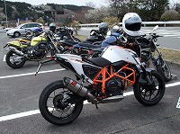 KTM DUKE690は大魔神こと森三中ことサクライ氏のマシン。 いろいろあって、刀とSRXを手放してしまったそう。 乗ってるバイクが変わっても、たまには顔を出して遊んでくださいね。 僕は姿を姿を見ることすらできませんでしたが、走りのキレは相変わらずだったそうなw