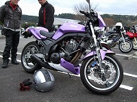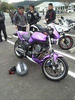 こちらも目立つマシン。たー坊号。白外装、二本出しマフラーにNorickのステッカー。 そしてマグたん…(ハアハア)
