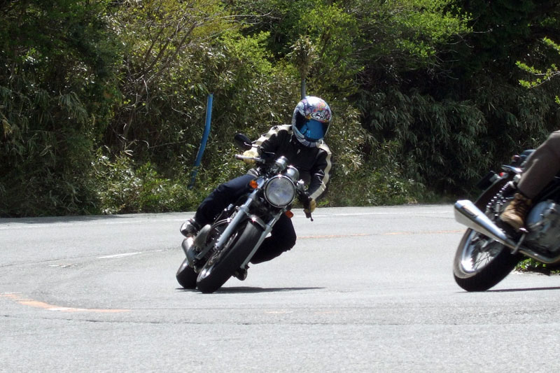 リトルカブで参戦は、地元小田原の毎日とうさん氏。 例によって、走行写真のためにちょっと早めに出るから待っててね。 |