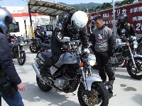 なんぼキックしてもエンジンが始動せず、苦笑いのあっち氏w 選手交代、BSF氏。…ぷすん。 「おれもおれもおれもやる」とkamu氏。…ぷすん。 結局、カブッたプラグが乾くのを待って、 |