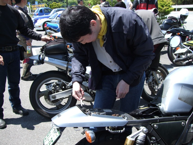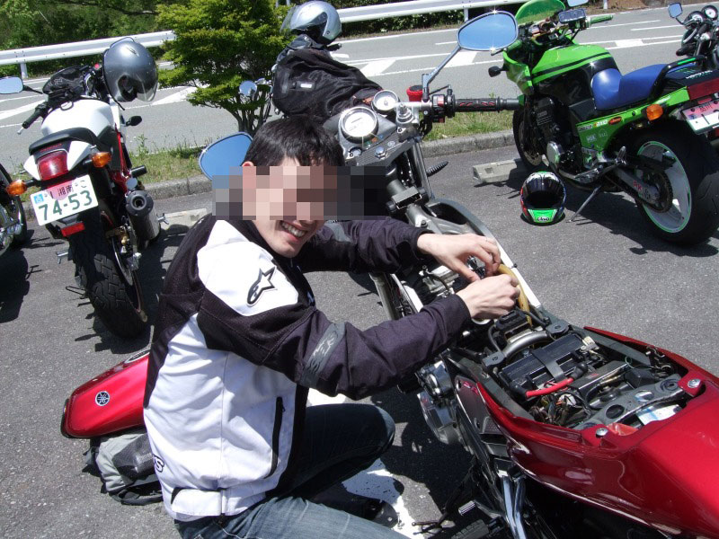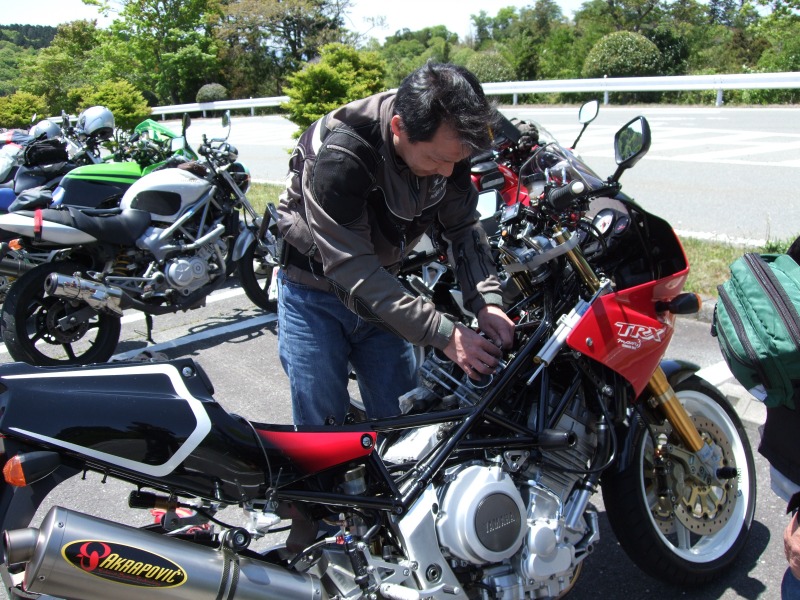 TRX850で奥さまとタンデムのぴぃ氏も、毎度々々のキャブセッティング。 5〜6月はキャブセッティングの端境期なんですよね。