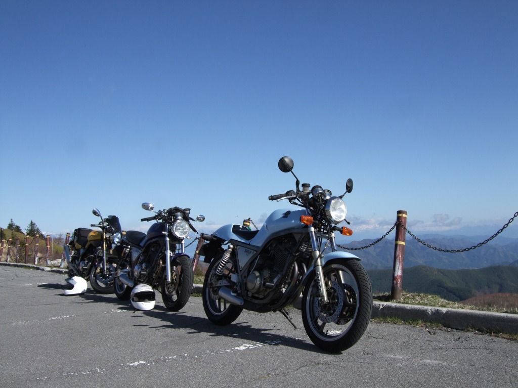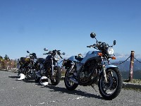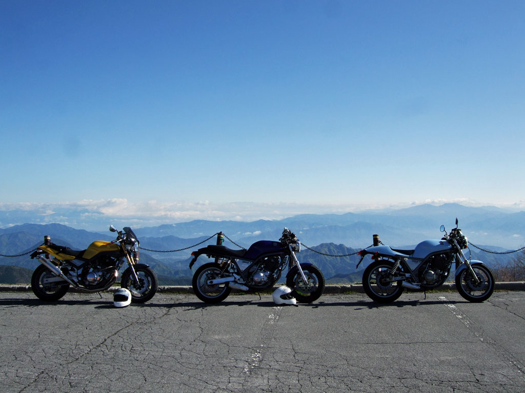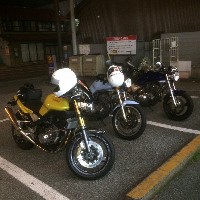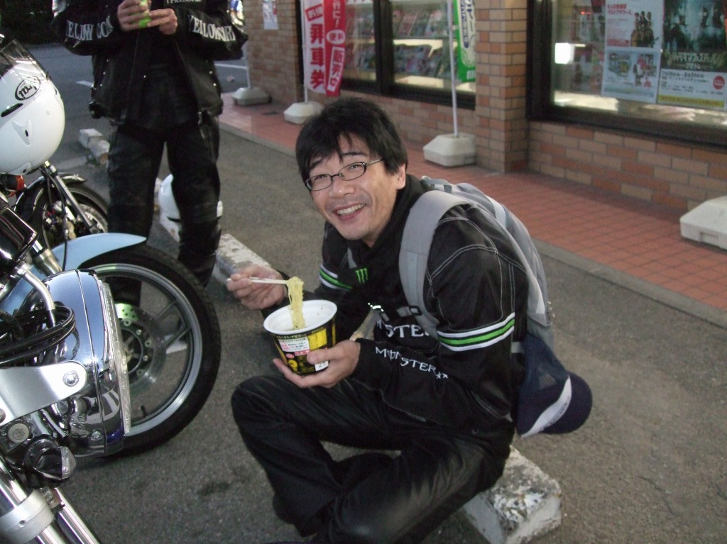 AM3:30 上野原デイリー。こっち方面走るときの待ち合わせ場所は、昔から何故かここ。 AM4:00 深夜の下道ツーに慣れている(?)nakamura氏が、自然と先導を買って出てくれました。 |
