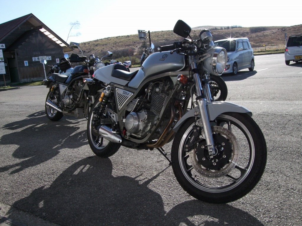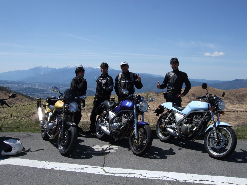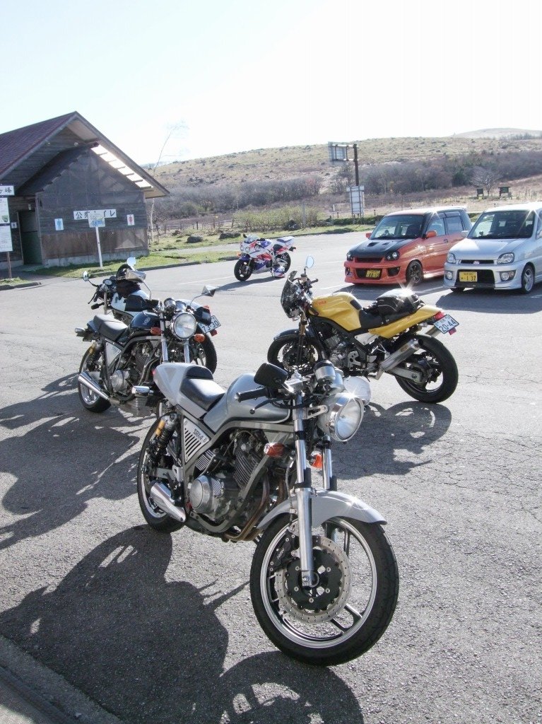 AM6:50 でたらめに並ぶSRXたち。 蓼科でペンション プリマリオを営むはるる氏が、 |