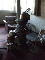 ロビーの奥で密やかに燃える達磨ストーブで暖を取る。 |