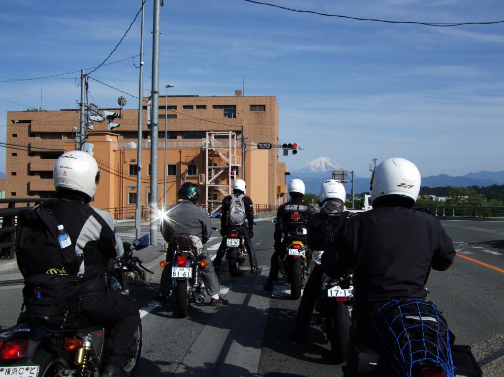 フェイ氏はこのままR299(十石峠)を行かれるとのこと。 PM3:40 甲府市内、この日はホントにいい天気で、富士山くっきり。 PM6:30 道の駅どうしで最後の集合写真。 |