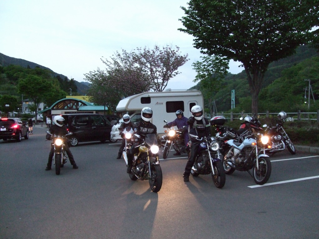 鉄人ko-ji氏。SRXでお会いするのはちょっと久しぶりかも。 PM1:00 「行けるとこまで下道で帰るぜ!」とゆうアタマワルイチョイスをしたメンバーは、 先に出発していたはずの寅楠氏、つねお氏、kamu氏も何故か合流してしまい、 |