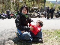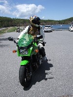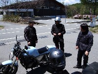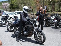AM11:50 GPZ900Ninjaで参加のつねお氏。SRXわー?ゎー。ゎー。(いぢわる) メット下のサングラスがイカすkamu氏。 |