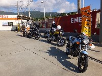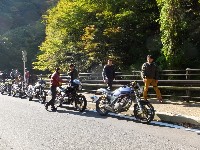トリコロールカラーの見るからに年代ものの革ツナギは、さいたまからおいでのヒロ氏です。
