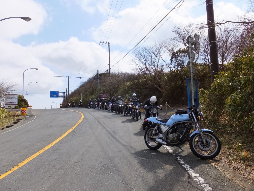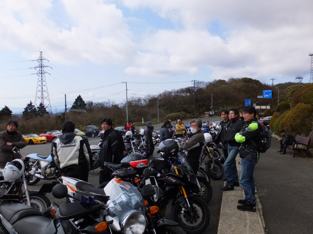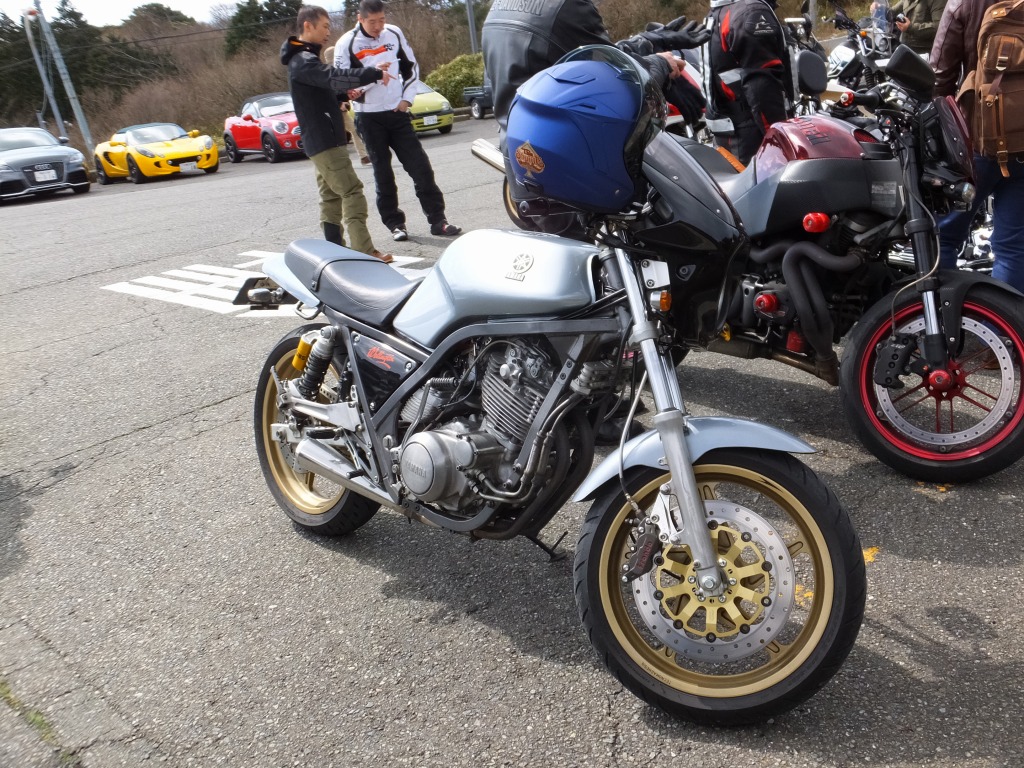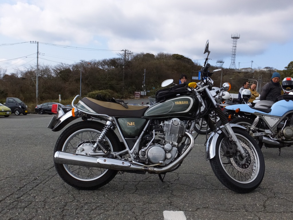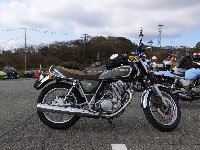 例年に比べれば、ずいぶんと静かで暖かな大観山。駄弁りに熱が入ります?w 鳴神氏のSR400は、35th Aniversary Edition。 黒塗りのサイドカバーのII型(III型かも)は、今回が初参加。のら氏のマシン。 |