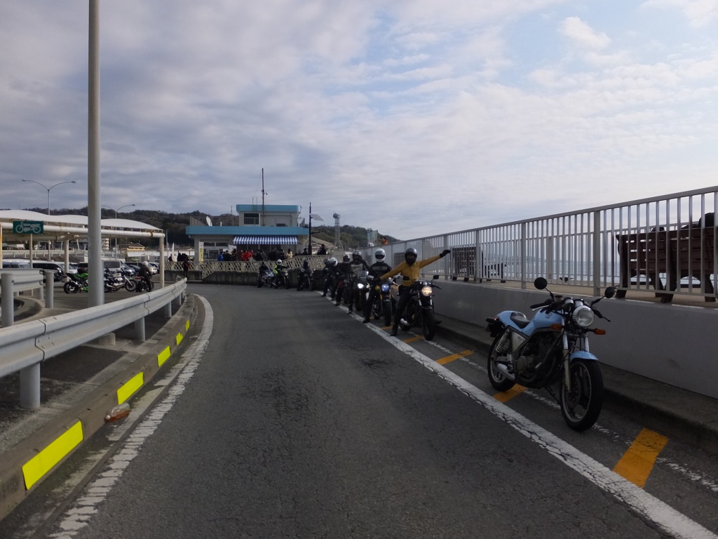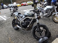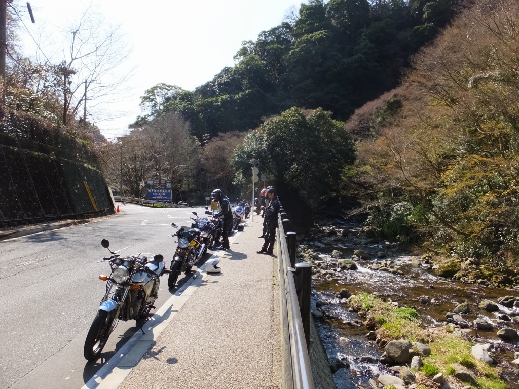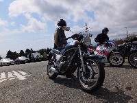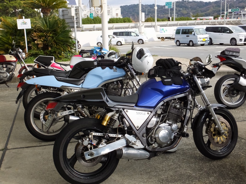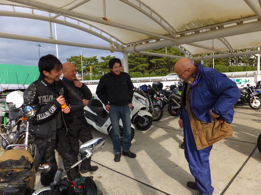例年に比べれば、ずいぶんと静かで暖かな大観山。駄弁りに熱が入ります?w 鳴神氏のSR400は、35th Aniversary Edition。 黒塗りのサイドカバーのII型(III型かも)は、今回が初参加。のら氏のマシン。 |