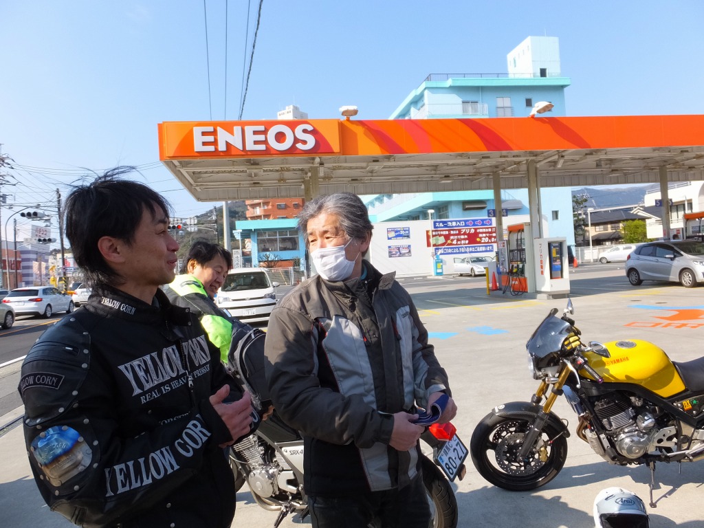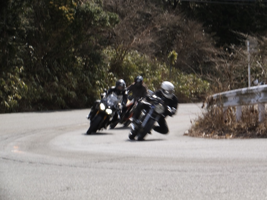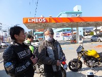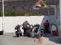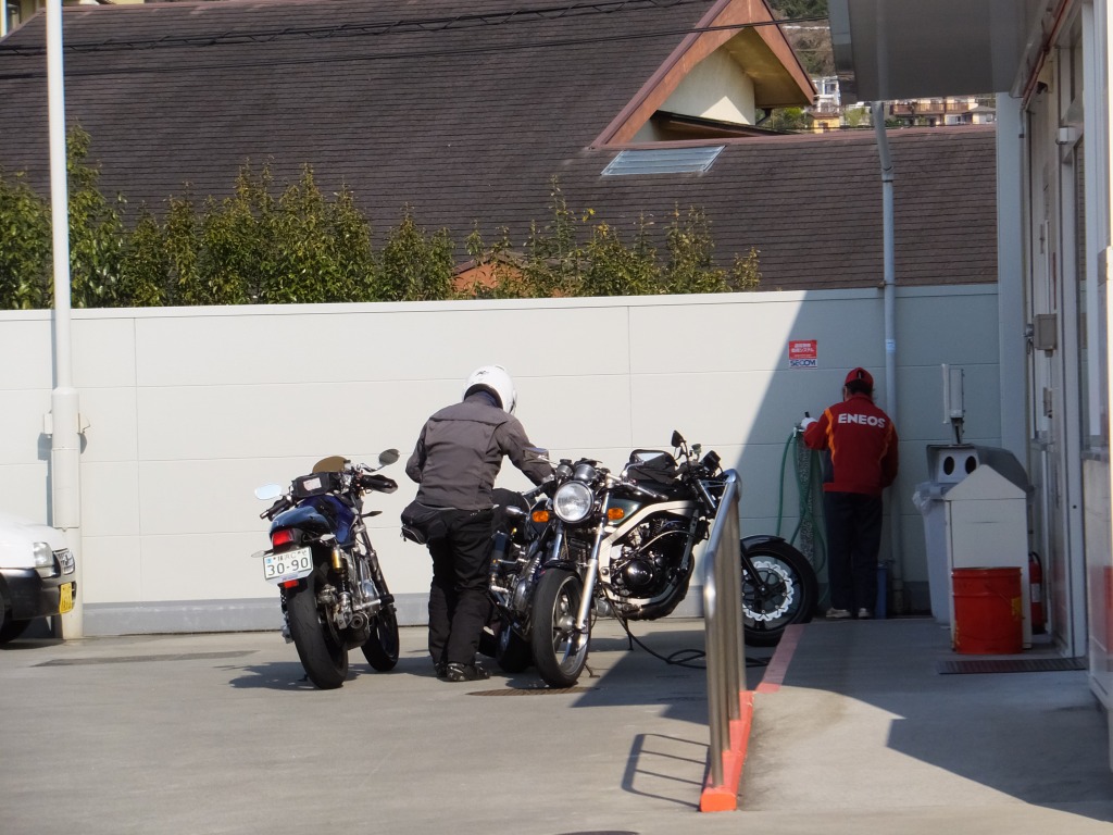 峠道に入る前に、愛車の空気圧をチェックするひとたち。 コンデヂの設定を変えたら、見事に大外しして、まともに撮れたのは一枚もないとゆう…。 |