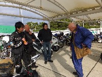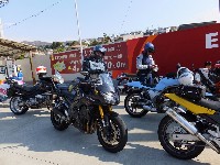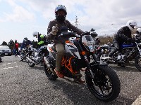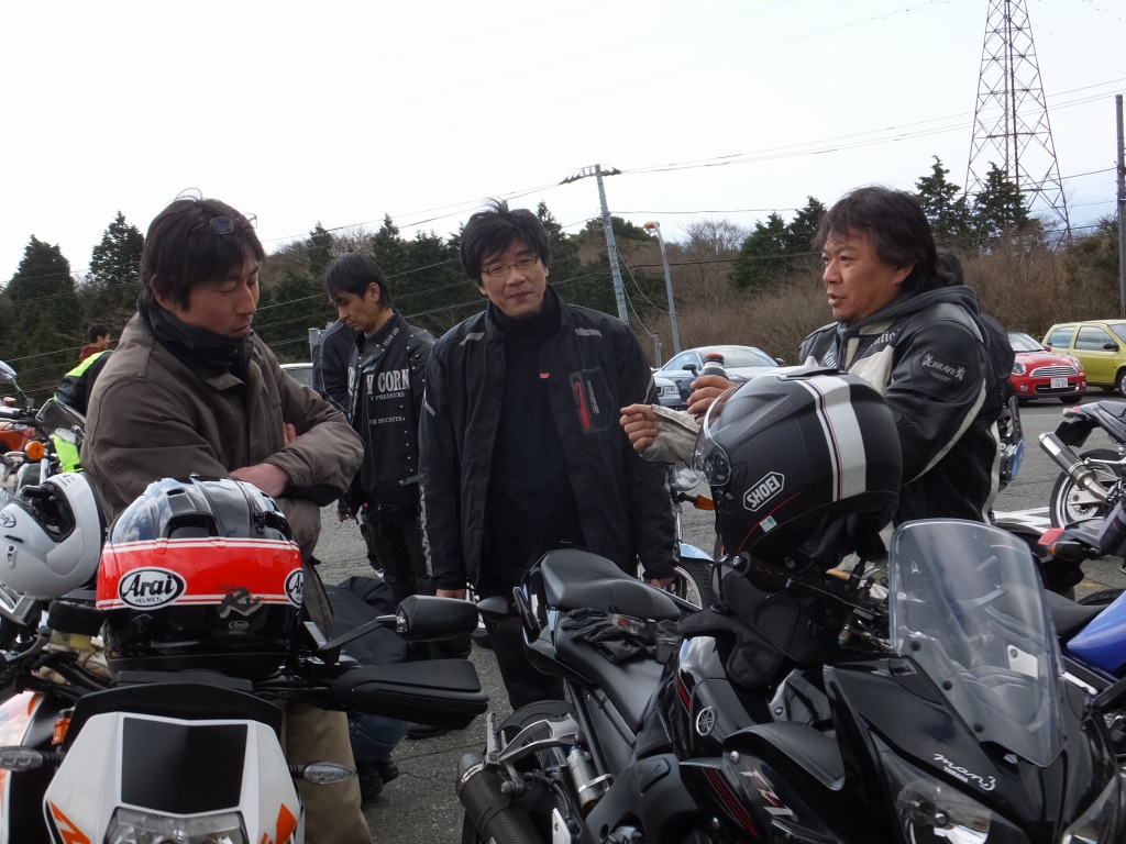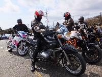 その背中で何を語るか、サマンサくん。そう、幸せだったんだ。このときまでは、まだ。 奥さまのKTM DUKE690Rで遊びに来てくださった森三中氏。 少し曇ってきたので、さくさくと移動しますよ。 |